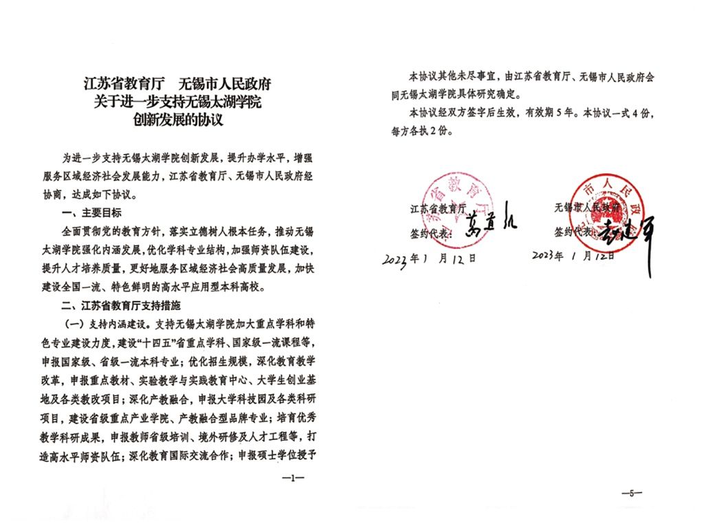 江苏省教育厅、无锡市人民政府共同签署《关于加大支持beat365在线唯一官网创新发展的协议》