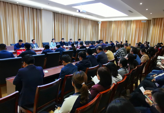 本网讯 按照中央和省、市委关于“不忘初心、牢记使命”主题教育的部署要求和学校党委主题教育工作安排,10月30日下午,学校召开“不忘初心、牢记使命”主题教育专题调研成果交流会,相关领导、干部围绕各自牵头负责的调研专题汇报了调研情况,并进行了深入探讨,提出了有针对性的对策建议。学校理事长、党委书记金秋萍,副校长何宏金,副校长王心如,党委副书记丁涛,副校长陈鹏飞参加此次交流会。市委主题教育第九巡回指导组组员、市产业集团组织人事部主管陈峰主任到会指导。校党委委员阙明坤、邹山花、吴学林、周鸣鸣,全体中层干部,各二级学院党总支书记、副书记,各支部书记参会。会议由校党委副书记丁涛主持。