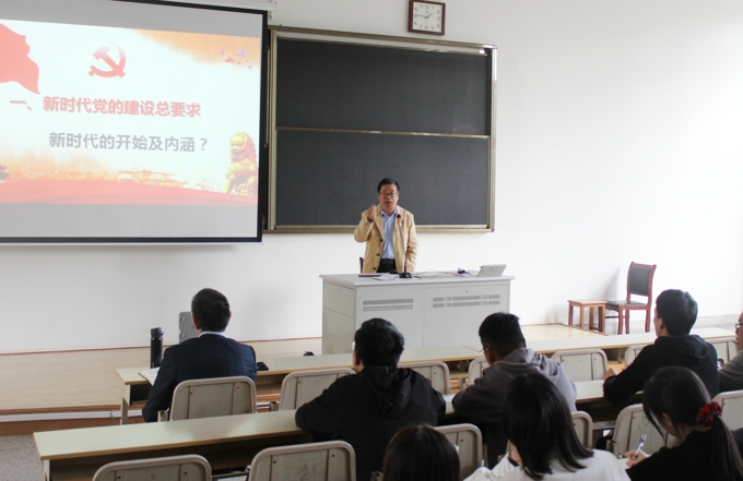 马克思主义学院副院长陆启义对“学习新时代党的建设总要求,全面理解党的建设新布局”进行了讲解。学习宣传贯彻党的十九大精神是全党全国当前和今后一个时期的首要政治任务。任何艰难困苦的环境下,当有矢志不渝的好学之心,同时我们青年当有心怀社会、胸怀国家的价值追求,做一个有价值的人。