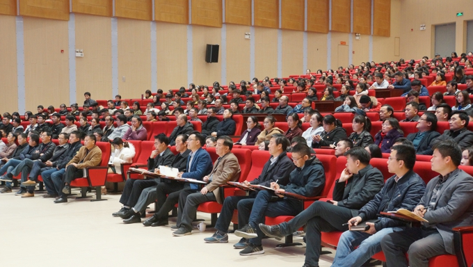 金秋萍书记在主持报告会时指出,全校教职工、学生党员和入党积极分子要以本次宣讲报告会的举行为契机,在全校迅速掀起学习宣传贯彻党的十九届四中全会的热潮,要在深入学习中领会精神实质,系统领会新思想、深刻理解新观点、准确把握新要求,党员领导干部要以身作则、以上率下,先学一步、学深一层,更好推动学校各项事业发展;要在广泛宣传中凝聚发展共识,各二级学院、各部门要把宣传全会精神摆在重要位置,通过喜闻乐见的方式,开展宣传宣讲工作,推动学习贯彻全覆盖,确保全会精神入脑入心;要在结合实际中全面贯彻落实,把全会精神的学习作为理论学习中心组学习和“不忘初心、牢记使命”主题教育的重要内容,把准确把握中国特色社会主义制度和国家治理体系的科学内涵、本质特征和显著优势,与推动学校进一步落实立德树人根本任务,践行为党育人、为国育才光荣使命,加快建设特色鲜明、国内一流的应用型本科大学很好结合起来,在推动实际工作中把全会精神贯彻好、落实好。