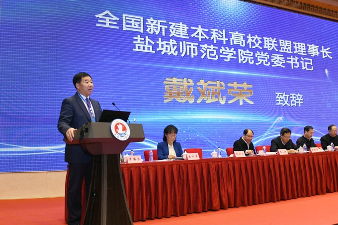 开幕式上,全国人大原常委、全国人大法律委员会副主任、教育部原党组成员、部长助理李连宁,中国高教学会副会长、教育部高教司原司长张大良作重要讲话。江苏省教育厅副厅长、党组成员王成斌,全国新建本科高校联盟理事长、盐城师范学院党委书记戴斌荣,全国新建本科高校联盟副理事长、学校理事长、党委书记金秋萍分别代表江苏省教育厅、大会主办方和承办方致辞。开幕式由学校常务副校长李廉水主持。