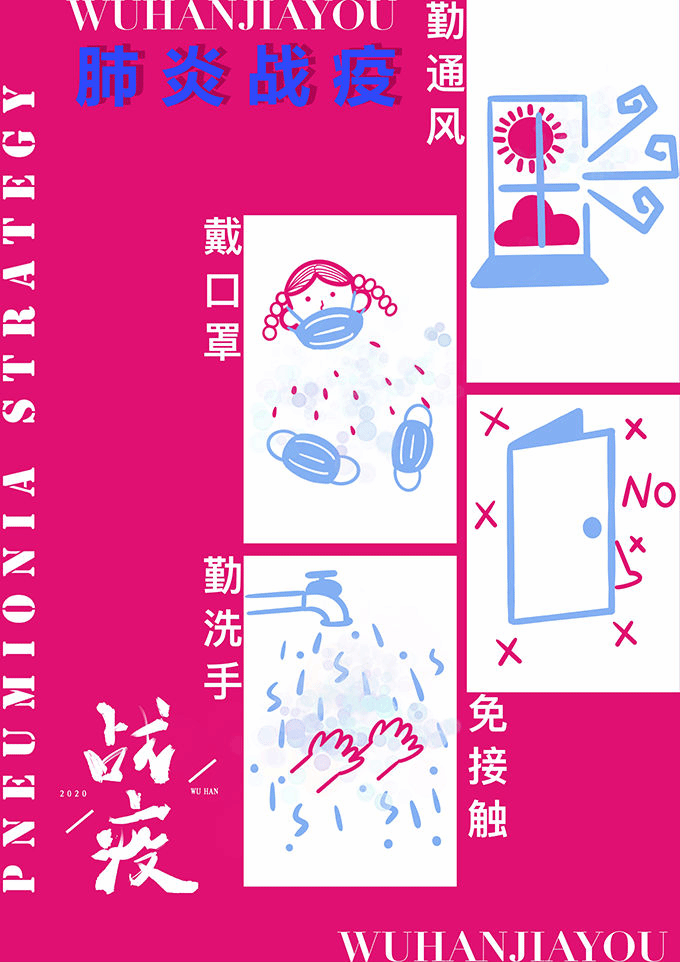 设计说明:在这场战役中,病疫给我们生活带来了太多的恐惧和不便,而在这特殊的时期里,我们唯一能做的就是保护好自己并且不去危害别人。即使是在春节期间,也要做到避免密切接触,在家勤通风,出门戴口罩,回家勤洗手消毒。相信我们一定可以很快战胜病疫。