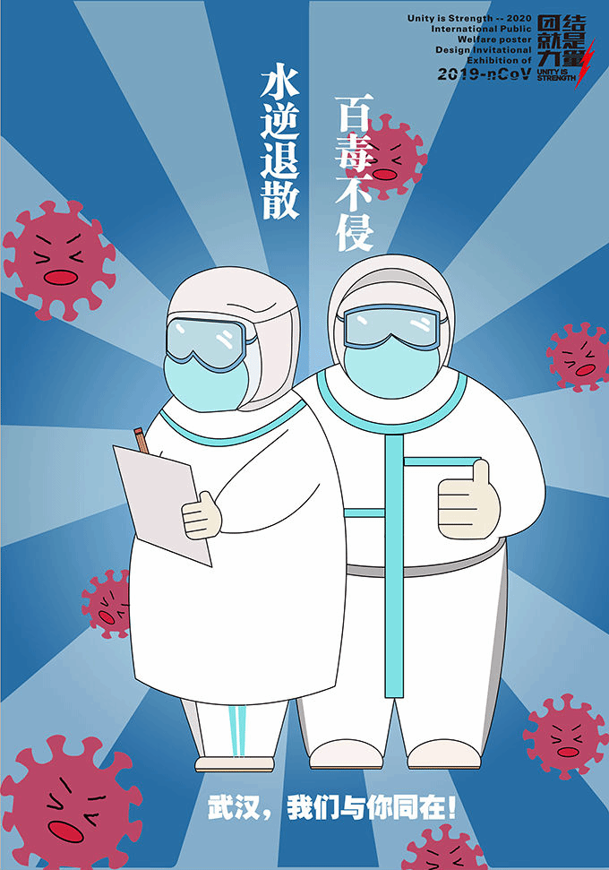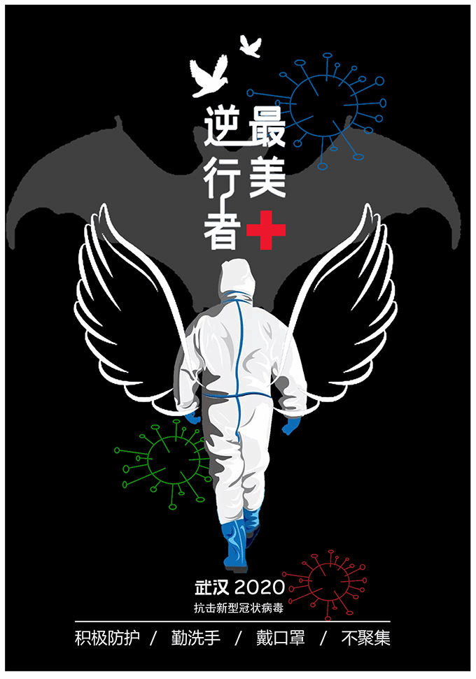 设计说明:疫情发生以来,全国医护工作者纷纷请战,争做最美逆行者,奔赴武汉救治患者,他们不辞辛苦默默奉献,而我们也坚信,武汉终究会水逆退散,百毒不侵,迎来最终胜利。而我们也会与武汉同在,社会各界患难与共,同舟共济,共克时艰!