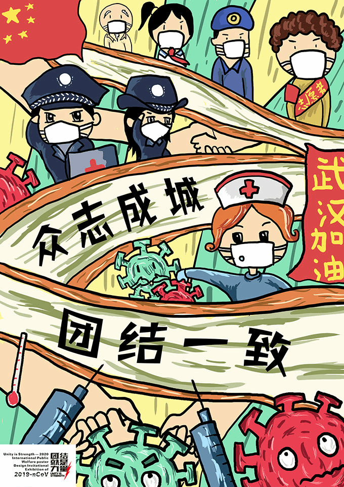 设计说明:自2019年12月,湖北省武汉市出现新型冠状病毒至今,中国人民再一次展现了团结一致、不服输的精神,一方有难,八方支援。不一样的职业,却拥有着同样的情怀。医生、护士、解放军、消防官员、建筑工人,为了全国人民,他们站在统一战线上,为打赢这一场没有硝烟的战争而做出自己的贡献。我们相信“团结就力量”疫情终会过去,春天即将到来,我们一起静待武汉花开!