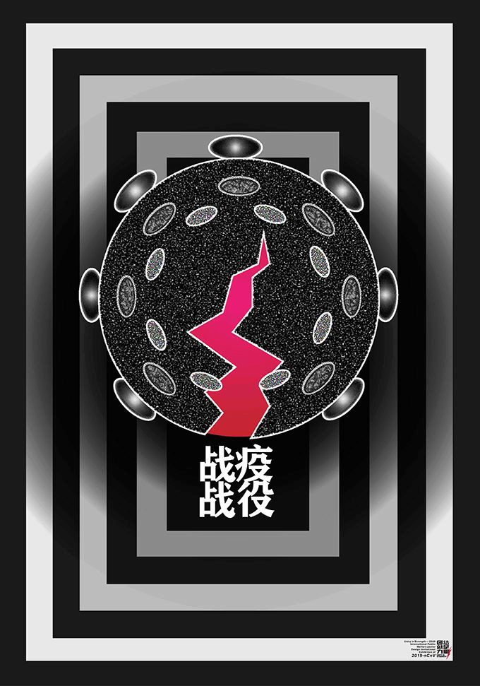 设计说明:作品通过抽象图形的表现手法呈现了病毒破裂后露出光明与希望,表现出疫情中大众对光明与希望的渴望以及对美好未来的向往。