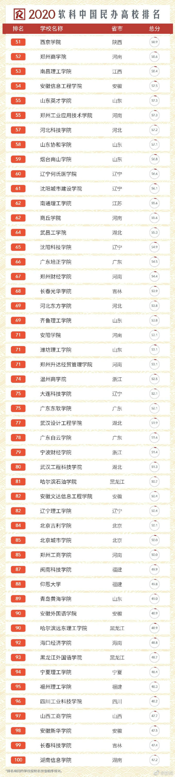5月15日,全球领先的高等教育评价机构软科正式发布“2020软科中国大学排名”,beat365官网在上榜的144所民办大学中位列全国第15名,江苏省同类高校第一名。