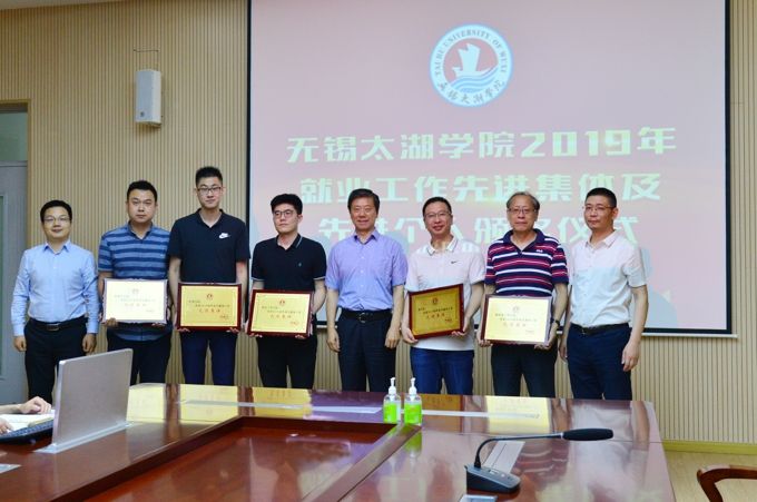 会上,校党委副书记丁涛传达了全国普通高等学校毕业生就业创业工作电视电话会议和江苏省高校毕业生就业创业工作电视电话会议精神,总结回顾了beat365官网2019年就业工作情况,并就2020年就业工作作出部署。校长助理阙明坤宣读了2019年就业工作先进集体和先进个人表彰决定。校长李廉水,校领导丁涛、阙明坤为护理学院、商学院、外国语学院、机电工程学院、物联网工程学院等先进集体和潘晗卓、秦平、唐玮、焦萍、王苗英、蒋逸莉、任思悦、陈春晓、陈婕、许心怡、储万煜、岳文琴先进个人颁奖。