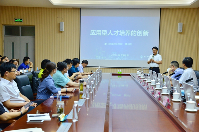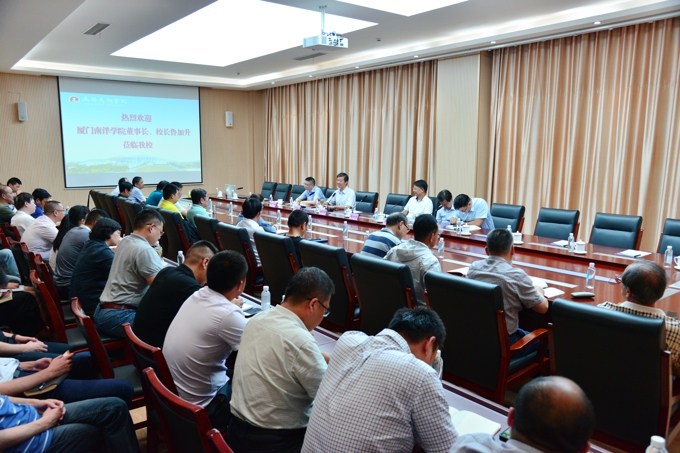 6月22日下午,中国民办教育协会高等教育专业委员会副理事长,厦门南洋学院董事长、校长鲁加升教授应邀来beat365官网作题为“应用型人才培养的创新”专题学术报告,校长李廉水主持报告会。校领导丁涛、陈鹏飞,全体中层干部,校办、党委宣传部、组织人事处、教务处学生工作处等部门工作人员,以及二级学院教学秘书参加会议。