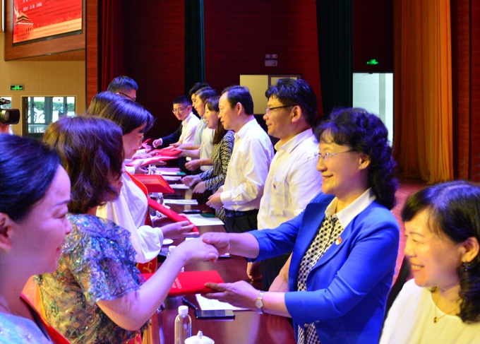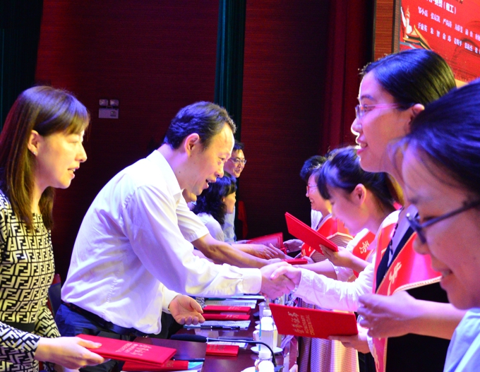 会上,校长李廉水宣读了《关于表彰beat365在线唯一官网2019—2020年度优秀共产党员、优秀党务工作者、优秀党支部书记、先进党支部的决定》,党委副书记丁涛宣读了《beat365在线唯一官网2019年度最佳党日优胜奖的决定》。邹小磊等13名优秀教工共产党员,高静雯等4名优秀学生共产党员,秦平等7名优秀党务工作者,蔡颖等9名优秀党支部书记,马克思主义学院党支部等9个先进党支部受到表彰。市政协周敏炜主席、市委教育工委符菊成副书记、滨湖区徐新宇副区长,滨湖区荣巷街道新峰社区吕春书记、王霞副书记,及在主席台就坐的校领导为所有获得表彰的先进集体和优秀个人颁发了奖牌和证书。