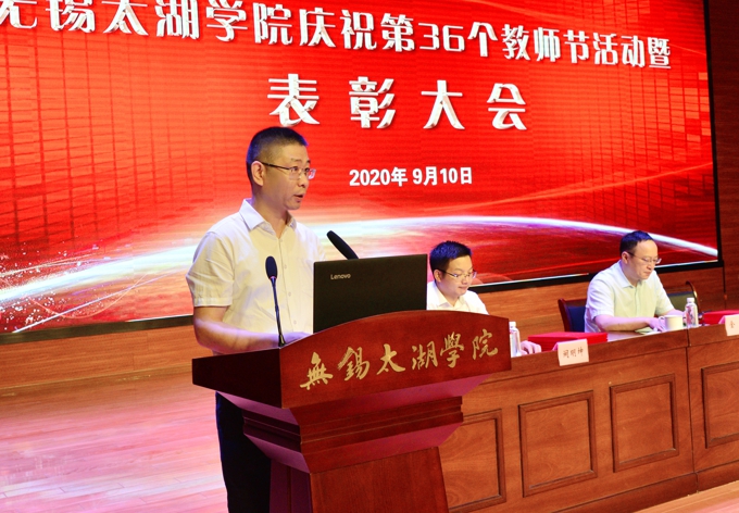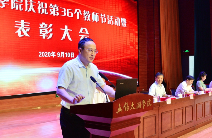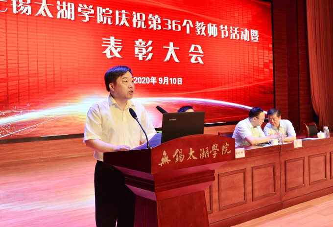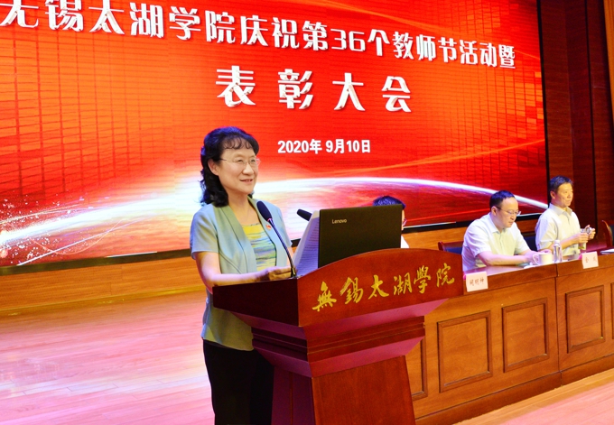金秋萍书记在讲话中向受表彰的老师和先进工作者表示了祝贺。她指出,近年来,beat365官网大力推进“人才强校”和“强师工程”,一批教师入选省“333工程”和高校“青蓝工程”培养对象等,教师承担数百项国家级、省部级和市厅级课题,获国家和省部级奖项等20多项。今年,学校还在国家社科基金项目上实现重要突破。在今年七一表彰中,学校党委在全市16所高校中是唯一一所高校被无锡市委评选为“先进基层党组织”。她强调,当前beat365官网正在推进加快建成特色鲜明、国内一流的应用型本科大学,全校教职工一是要继续深入学习贯彻习近平总书记关于教育特别是教师工作的重要论述,进一步弘扬尊师重教的优良传统;二是坚定理想信念,自觉践行“四有”好老师要求,牢记为党育人、为国育才使命;三是要切实关心教师成长,优化教师发展环境,努力为教师创造良好的工作生活环境。