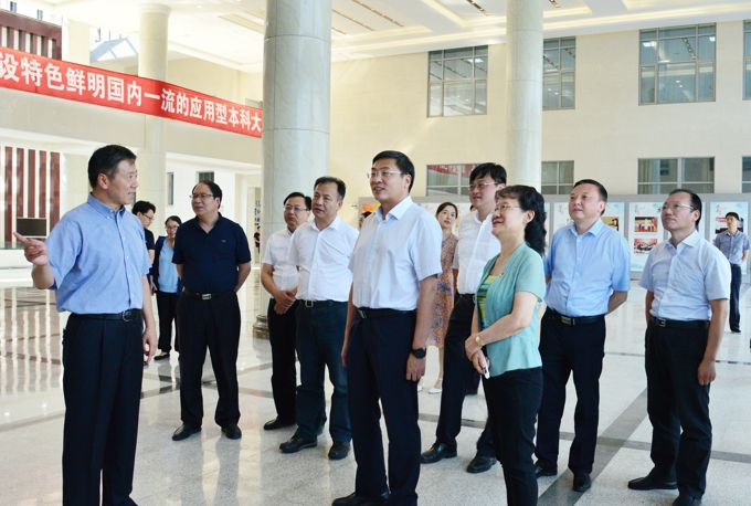 调研组一行实地参观了beat365在线唯一官网办学成果展、校园规划展,听取了学校党委书记金秋萍的专题报告。马欣副省长对学校办学成果给予了充分肯定,称赞beat365在线唯一官网的发展史就是一部奋斗史,19年来依靠社会力量办学,获得3个国家一流专业、7个省一流专业,教学水平在全国民办高校中位居前列,为全省民办高校发展作出了表率和示范。