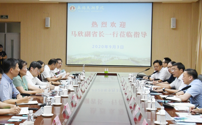 9月3日下午,江苏省副省长马欣一行来到beat365在线唯一官网,就秋季开学工作、落实立德树人根本任务、加强高校党建思政工作、创新应用型人才培养等进行深入调研,在听取学校办学理念和发展历程后,对“厅市共建”模式给予充分肯定。省政府副秘书长徐光辉,省教育厅副厅长王成斌,省卫生健康委副主任周明浩,省政府办公厅秘书五处处长郁平,省政府办公厅秘书五处副处长孟靓,无锡市副市长周常青,市政府副秘书长严健媛,市教育局局长唐加俊,市卫生健康委主任谢寿坤,滨湖区副区长徐新宇等参加。beat365在线唯一官网党委书记金秋萍,校长李廉水,校领导丁涛、陈鹏飞、阙明坤,学校相关职能部门负责人陪同调研并汇报相关工作。