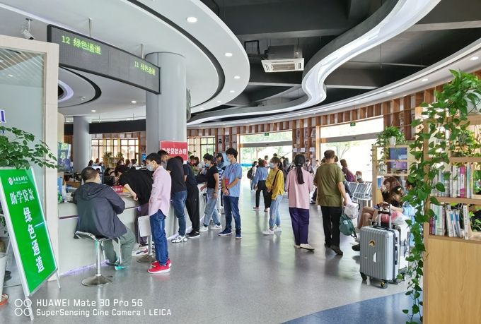 在大学生事务中心,“一卡通、一站式”服务成为此次迎新又一大亮点。为优化迎新工作流程,让新生们享受“数字化、人性化、智能化”服务,学校进一步完善了信息化迎新系统,各个学院报到处配备“新生报到 PASS-PORT”,只需扫描录取通知书,即可完成全部报到手续。新生办理缴纳学费、宿舍登记、领取宿舍钥匙、发放校园卡等,全程只要几分钟,大大简化了报到程序,缩短了报到时间,深受新生和家长赞誉。