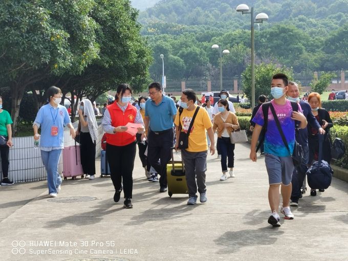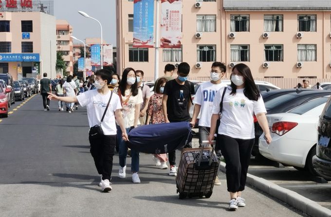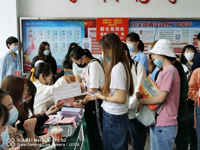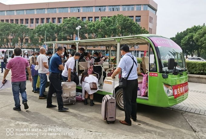 报到当日,学校在北门设立验证验码测温区、临时隔离区,在新生到达北门后,工作人员有序进行“一测二核三查四通过”。从入校前测温扫码到核验身份,从入校后行李摆渡到寝室登记入住,新生报到的各个程序科学设置、环环相扣,有力保证了疫情防控期间学生安全顺利报到入学。