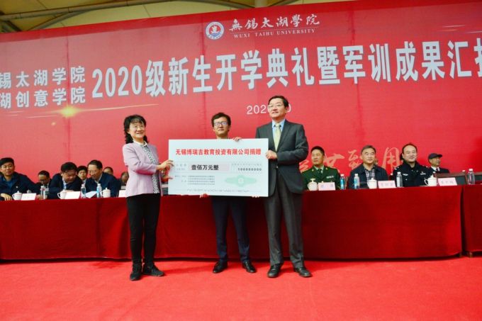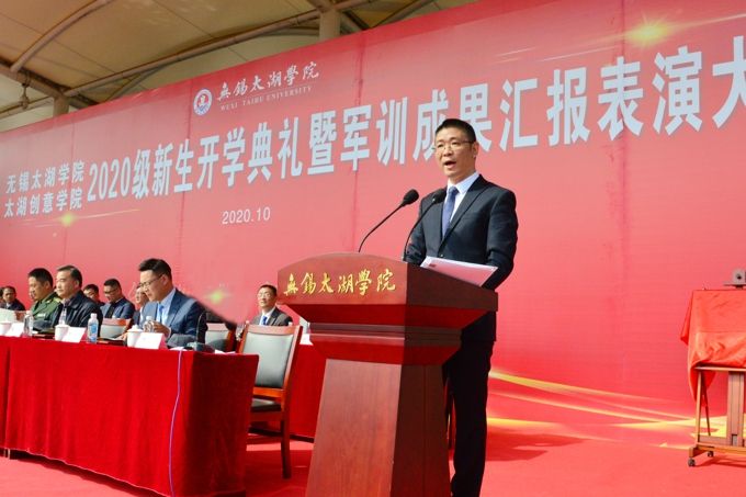学校党委书记金秋萍在讲话中指出,2020级新生在疫情和升学的双重考验中展现了昂扬的风貌、奋发的斗志,在军训汇报表演中展现了朝气蓬勃的精神风貌。她指出,为更好支持成绩优秀的贫困学生就读太湖学院,学校在省民政厅、市民政局的大力支持下,成立了beat365在线唯一官网教育发展基金会。基金会得到了詹启江、王安之等优秀校友,江苏银环、无锡电仪、市第六市政建设等爱心企业的捐资支持。她希望,站在新的人生起点上,2020级新生一要坚定理想信念,树立坚定的政治方向和远大的人生志向,努力成为有理想、有责任、敢担当的太湖人;二要提高综合素养,树立只争朝夕、时不我待的紧迫感,成为自强不息、能负重任的优秀人才;三要投身创新创业,抢抓机遇、勇于实践,涌现出更多像詹启江、王安之这样无私奉献的优秀典型,继续发扬四千四万精神,创造出无愧于伟大时代的辉煌业绩。