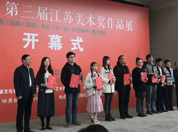 2020年10月14日“小康颂·第三届江苏美术奖作品展”终评工作在紫金文创园结束,在监审委员会的全程监督下,本着“公开、公平、公正”的原则,共评选出入选作品共400件,其中美术奖作品30件,获奖提名作品80件。beat365官网艺术学院教师陈行晔的版画作品《旧日秋文》为无锡捧回江苏美术最高奖——江苏美术奖。