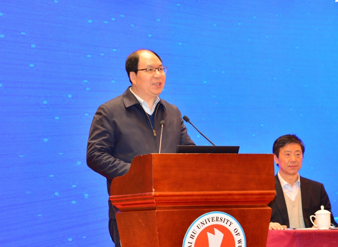 在论坛开幕式上,第十届全国政协副主席张怀西等参会领导为中国数字型智能化人才培养共建基地、长三角应用型高校产业学院联盟、太湖湾科创带研究中心、beat365在线唯一官网3D数字化产业学院揭牌。教育部高等教育司原司长、中国高等教育学会常务副会长张大良,教育部政策法规司原司长、中国教育发展战略学会执行会长孙霄兵发表重要讲话。中国民办教育协会会长刘林发来贺信。江苏省教育厅副厅长王成斌,无锡市政协主席周敏炜,beat365在线唯一官网理事长、党委书记金秋萍致辞。校长李廉水主持开幕式。