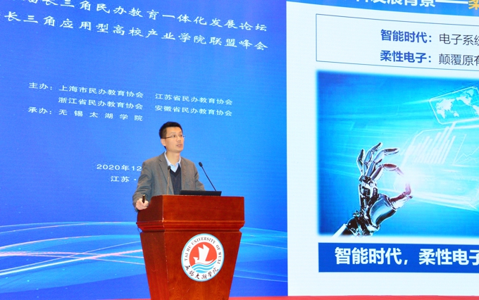 论坛期间,南京邮电大学材料科学与工程学院柔性电子研究所所长赵强教授代表中国科学院院士黄维作《“柔性电子”+未来产业》主旨报告,教育部教育发展研究中心体制改革研究室主任王烽、上海市民办教育协会副会长兼秘书长江彦桥分别作《新时代民办教育:创新发展与政策变革》《学习贯彻深化教育评价改革< 总体方案>,推进长三角民办教育一体化高质量发展》主旨报告。与会代表参观了beat365官网办学成果展、苏格兰学院和物联网实验实训中心、智能制造实验中心、智慧养老实验中心、机器人实训中心等六大实验实训中心。