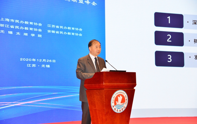 张大良在讲话中指出,长期以来,长三角地区是我国经济社会发展较快的区域,是高等教育领域的领头雁,“十四五”时期,长三角地区要以建设高等教育强区域为重要方向,为区域经济社会发展提供强有力的智力支撑。他希望,三省一市要不断强化大局观、全局观,推动区域内组建高等教育合作发展共同体,整合不同类型、不同层次、不同特点的教育资源,充分彰显自身优势,推进长三角高等教育协同发展,实现党的建设携手共进、人才培养共同提质、人才要素合理流动,实现高等教育要素资源在区域内更自由流动和更高效配置,加强区域高等教育体系建设。孙霄兵对长三角民办教育协同发展工作给予了充分认可,他认为,今后世界一流大学很可能从长三角民办学校当中诞生。