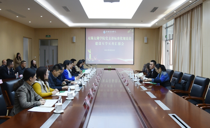 3月26日下午,无锡市委组织部党支部标准化规范化互学互查第十三检查组到校检查beat365官网党支部建设情况。第十三检查组组长、中国船舶重工集团公司第七〇二研究所隐身科研部党总支书记、副主任郝鹏程,检查组组员、中国水产科学研究院淡水渔业研究中心党委办公室副主任徐奕,607所组织委员、高级工程师李筱琳等一行莅临指导。学校理事长、党委书记金秋萍,校领导孙玉坤、丁涛、阙明坤出席。校办主任朱中伟,党委委员吴学林、吴旻昊及相关党支部负责人、党员代表参加。