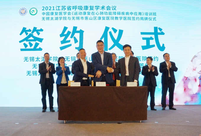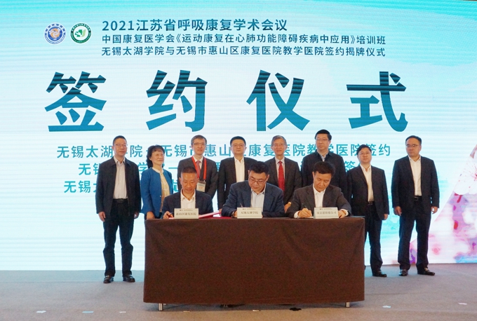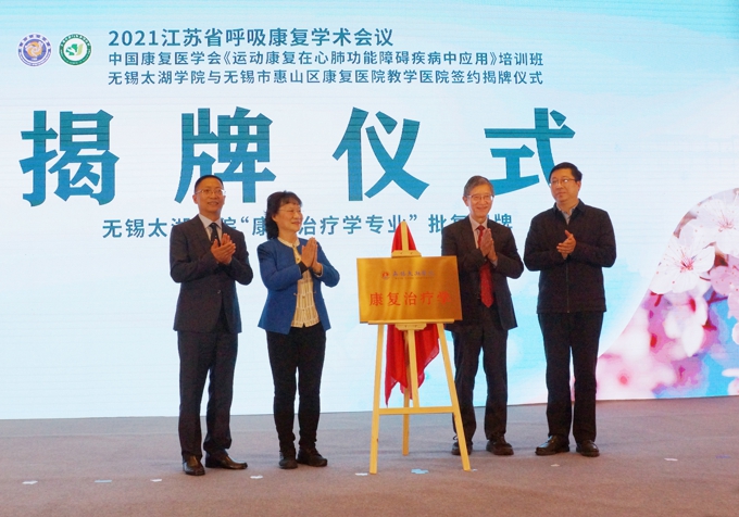 3月27日,2021江苏省呼吸康复学术会议在无锡举行,beat365在线唯一官网与惠山区康复医院合作,共同打造无锡康复医学特色品牌,太湖学院“康复治疗学”本科专业揭牌。无锡市副市长秦咏薪出席会议。beat365官网理事长、党委书记金秋萍,副校长陈鹏飞参加会议。