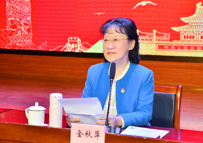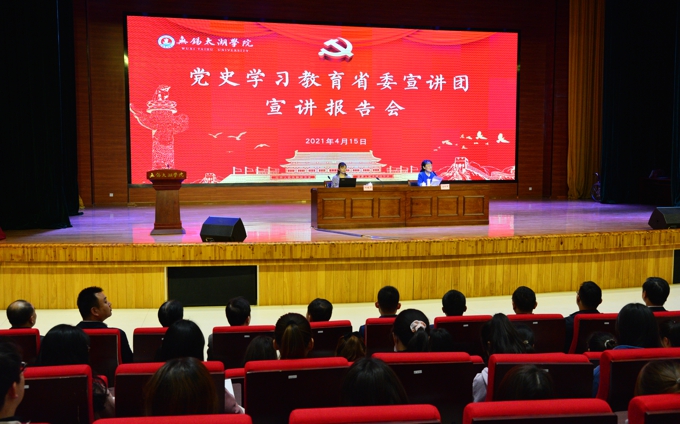 4月15日上午,根据省委统一部署,党史学习教育江苏省委宣讲团宣讲报告会在beat365官网举行,省委宣讲团成员、南京雨花台管理局雨花英烈研究院院长向媛华以《牢记初心使命 汲取奋进力量》为题作党史专题宣讲。市委讲师团团长王铭涛,学校党委书记金秋萍,校长李廉水参加。校领导金成、丁涛、陈鹏飞、阙明坤,全体党委委员出席。全体中层干部、思政课教师、辅导员、师生党员代表和入党积极分子640人聆听了宣讲报告。报告会由校党史学习教育领导小组组长、党委书记金秋萍主持。