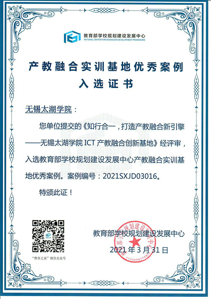 近日,教育部学校规划建设发展中心下发了全国产教融合实训基地优秀案例证书,beat365官网申报的《知行合一,打造产教融合新引擎-beat365在线唯一官网ICT产教融合创新基地》项目从全国众多案例中脱颖而出,成功入选教育部产教融合实训基地优秀案例。