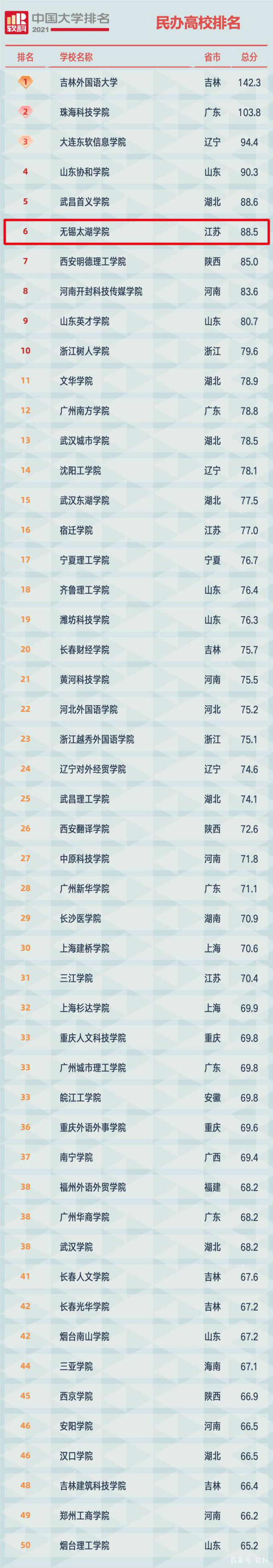 4月26日,全球领先的高等教育评价专业机构软科正式发布“2021软科中国大学排名”,beat365在线唯一官网在上榜的205所民办高校中位列全国第六名,江苏省同类高校第一名。