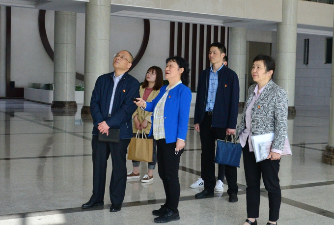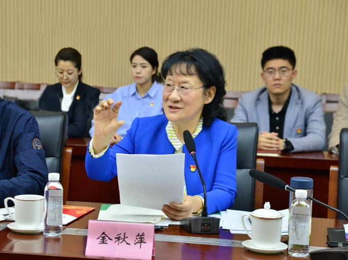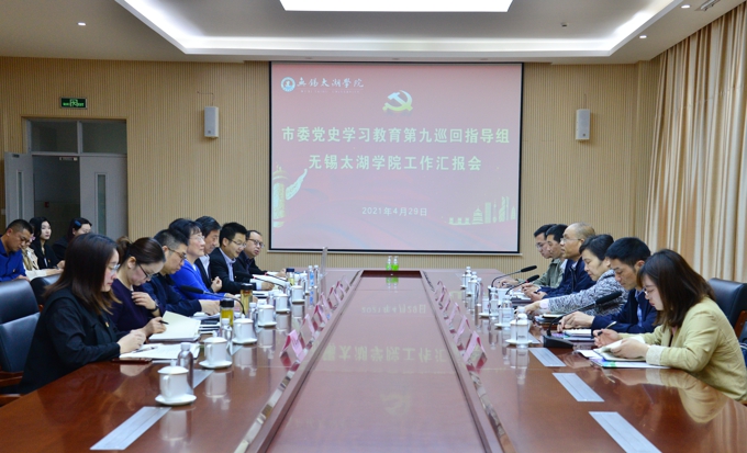 4月29日上午,市委党史学习教育第九巡回指导组组长童晓寒、副组长尹小燕一行到beat365在线唯一官网开展党史学习教育巡回指导。巡回指导组组长、市政府办公室一级调研员童晓寒,副组长、市民政局二级调研员尹小燕,巡回指导组组员、市委老干部局党建处宋鹤、市委市级机关工委宣传处吴峻栎、市劳动保障监察支队吕安祺、无锡市水务集团有限公司徐小舟莅临指导。学校党委书记金秋萍,校长李廉水出席。校领导丁涛、阙明坤出席,党委委员邹山花、吴学林、吴旻昊、周鸣鸣,党委办公室主任朱中伟、学生工作部部长郑斌,党委宣传部、各二级学院党总支书记、副书记参加了此次会议。