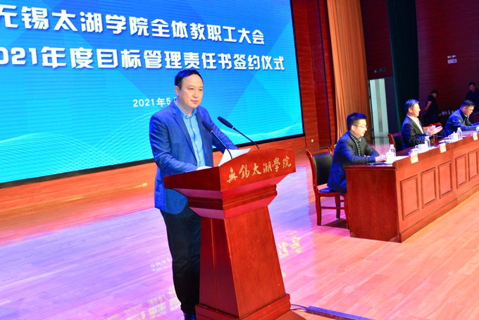 李廉水校长对此次受表彰和奖励的优秀二级学院和优秀职能部门表示了祝贺,并向此次参与目标考核管理的教职工致以敬意。他指出,开展目标管理的核心在于让每个人明确定位,在日常工作中做到有方向、有路径、有思路,在有限的资源和条件下实现效益的最大化。2020年,学校各项成绩显著。一是切实强化顶层设计,不断提升大学治理效能,通过民主协商形成目标管理体系,高质量编制了学校“十四五”规划纲要。二是深化人才培养模式改革,不断提高人才培养质量,财务管理、国际经济与贸易、旅游管理、英语、土木工程、计算机科学与技术、电子信息工程、数字媒体艺术等8个专业入选省级一流专业建设点,入选数居全省和全国同类高校第一,“品牌形象设计”“创新创业实践”2门课程成功入选国家一流本科课程,新增设了软件工程、机器人工程两个专业,新申报了跨境电子商务、人工智能、智能制造、康复治疗学等四个专业;成功创建了苏格兰学院。三是努力提高科学研究水平,增强了学校核心竞争力,设立科研月报制度,定期召开科研月报指标分析会,全年获批科研项目在2019年基础上增加了75%,创办了《beat365在线唯一官网学报》,进一步营造了学术研究的氛围。四是加强师资队伍建设力度,提高教师整体水平,健全师德师风建设长效机制,2020年开展师德典型评比,评选出20名师德标兵;优化了新教师引进标准,增补了校聘教授和副教授的评审办法,促进了存量优化;推进学历提升和调整淘汰工作,同时,对全校教师以及二级学院的教学科研工作进行全面考核和调研,并在此基础上实施末位淘汰制;持续优化“双师”评选认定。五是创新校企协同育人机制,构建产教融合新格局,与无锡市商务局等共建中国(无锡)跨境电商学院;主动融入地方经济社会发展,学校新增21家实体性校企合作基地;新增教育部协同育人项目15个;案例入选中国高等教育学会“校企合作双百计划”优秀案例,并被推荐参加长沙高博会展览展示。六是牢固树立“学生中心”意识,创新学生工作机制,加强学生思想政治教育。2020年,学校开办了学生干部培训班,组织开展了校院两级学生的思想教育,完成了学生德智体综合素质测评工作;组织学生参加无锡马拉松、第二届运河博览会志愿服务等,疫情期间,引导志愿者主动投入基层防疫工作,荣获省市级“抗疫先进”奖项共计27项。此外,招生就业工作、校友联络工作和校园文化建设均取得新的成效。
