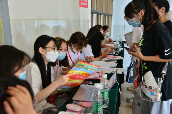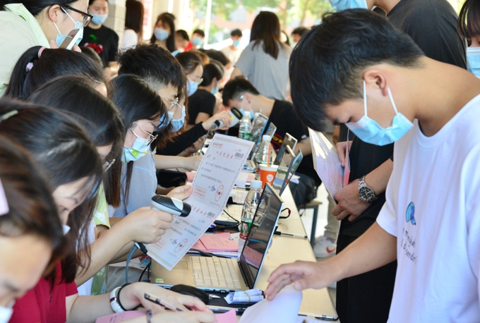 面对今年5000多名新生规模,为更加细致地做好今年的迎新工作,学校组织了近2000名由各专业教师、辅导员、在校大学生等组成的志愿者队伍,从26日早上7时许就活跃在车站、校门口、停车场、报到处、学生公寓等各个迎新岗位,成为一道亮丽的风景线。为落实疫情防控要求,新生家长需在宿舍区域外等候,学校一方面组织大批志愿者为新生搬运行李,一方面搭设帐篷、提供饮用水供新生家长临时休息使用,全力服务好新生及陪同家长。值得一提的是,此次新生体检工作量相对更大,由护理学院在校生组成的志愿者团队主动承担了这项工作,协助医护人员,为新生提供方便快捷的体检服务。