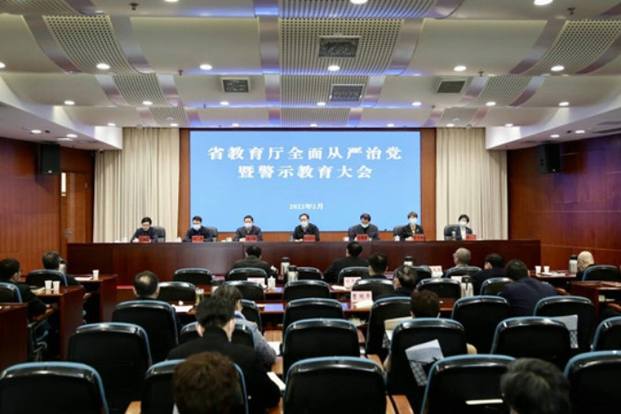 2月23日,省教育厅召开全面从严治党暨警示教育大会,运用“身边事”对“身边人”进行警示教育,研究部署2022年全面从严治党任务。省教育厅厅长、党组书记葛道凯出席并讲话,省纪委监委派驻省教育厅纪检监察组组长、省教育厅党组成员刘军对推进全面从严治党工作提出要求。省教育厅党组成员、机关党委书记汪国培主持会议,并通报2021年度全厅关于对违纪违法问题的处理情况。全体厅领导出席会议。学校理事长、党委书记金秋萍,校长李廉水,校领导孙玉坤、丁涛、阙明坤,部分中层干部,各二级党总支书记、副书记,党支部书记代表在beat365官网分会场参加。