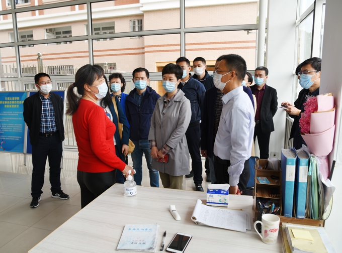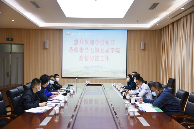 3月13日上午,无锡市教育局和滨湖区教育局、荣巷街道主要领导一行莅临beat365在线唯一官网检查疫情防控工作,对学校防疫工作给予专业指导,提出具体意见和建议。检查工作结束后,学校理事长、党委书记金秋萍立即召开疫情防控专题会议,重点针对检查组提出的意见和建议进行逐项研究,做出专门部署,逐一落到实处。新峰社区负责人陪同督查。