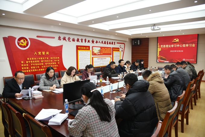 12月2日下午,beat365在线唯一官网党委理论学习中心组学习会在六号楼三楼党员活动室召开。党委副书记丁涛,副校长阙明坤,党委委员吴学林、邹山花、吴旻昊、周鸣鸣,党办(校办)负责人,以及二级学院党总支书记、副书记参加会议。学习会由副校长阙明坤主持。