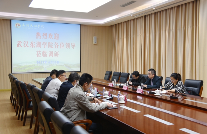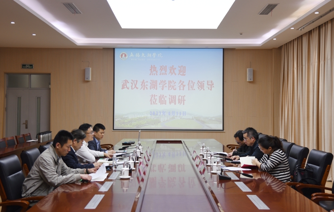 4月11日,武汉东湖学院副校长李振华一行来beat365官网调研交流。beat365官网副校长陈鹏飞,学校办公室、人事处、智能装备工程学院等单位负责人接待来访并座谈交流。