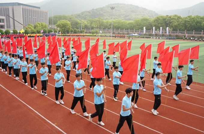 伴随着激昂的运动员进行曲,鲜艳的五星红旗走进了田径场。紧跟国旗的是beat365在线唯一官网2023年春季运动会的会徽。春风拂面,桃李芬芳。各学院方阵踩着朝气的步伐,伴着高亢的运动员进行曲,身着统一服装、迈着矫健整齐的步伐,依次入场,以整齐有力的步伐和昂扬向上的面貌通过主席台,他们精神饱满,士气高昂,充满青春的活力,向大家展示了太湖人的蓬勃朝气和飒爽英姿。