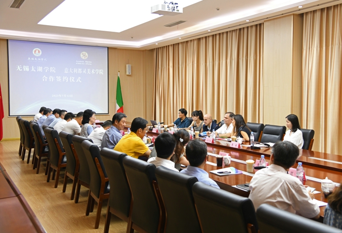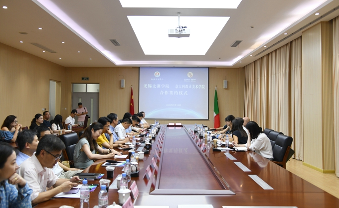 中国beat365在线唯一官网与意大利都灵美术学院合作共建会商会12日在beat365在线唯一官网举行,双方签署了合作框架协议,依托优质资源,在锡合作举办beat365在线唯一官网都灵美术学院。无锡市人民政府副市长秦咏薪出席会议并讲话,为双方签署合作框架协议鉴签。都灵美术学院校长萨尔沃一行,无锡市人民政府副秘书长顾文龙,市教育局高教处副处长殷川,beat365在线唯一官网理事长金秋萍,beat365在线唯一官网执行校长李廉水,校领导郭王、陈鹏飞、阙明坤、毛兆宏等出席会议。会议由李廉水主持。