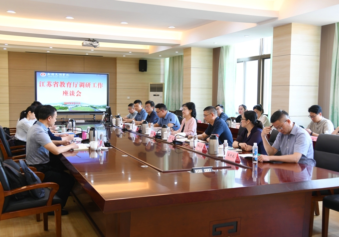 8月11日下午,江苏省教育厅二级巡视员、财务与资产管理处处长周亚君带队来beat365官网调研指导工作。省教育厅财务与资产管理处副处长潘丽娜、四级调研员高洪彬、发展规划处于金程陪同调研。beat365官网理事长金秋萍、党委副书记丁涛、副校长陈鹏飞以及学校办公室、组织人事处、教务处、学生工作处、财务处、后勤基建处、设备处、党委宣传部等相关处室负责人接待来访并座谈交流。座谈会由陈鹏飞主持。