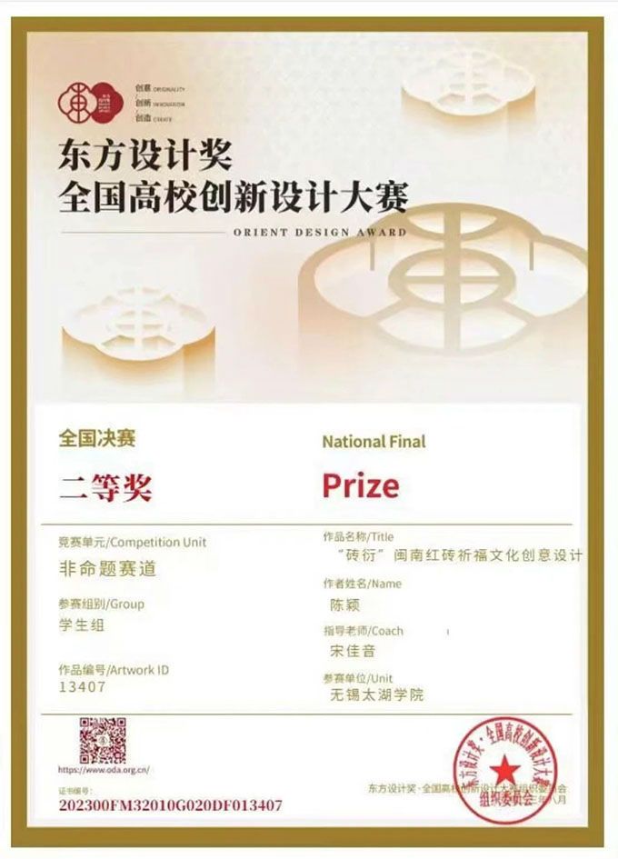 陈颖 | “砖衍“闽南红砖祈福文化创新设计 | 二等奖 | 视觉 设计 | 宋佳音 |