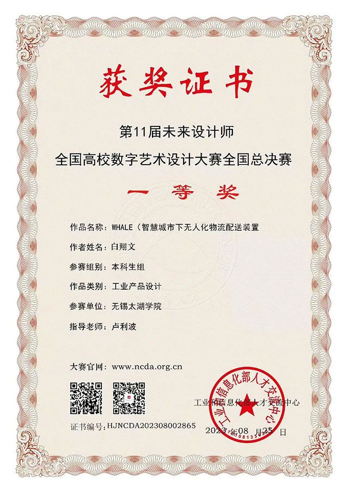 白翔文 | WHALE智慧城市下无人化物流配送装置 | 一等奖 | 产品 设计 | 卢利波 |