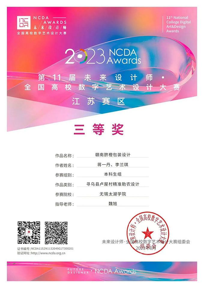 袁国锋 | 橙意满满、前橙似锦—寻乌县赣南脐橙包装 | 二等奖 | 视觉 设计 | 徐盈婷 |