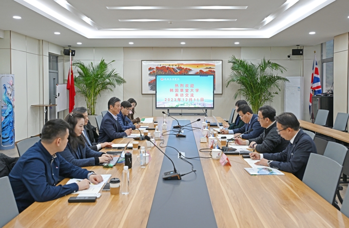 12月11日下午,beat365在线唯一官网接待韩国草堂大学副校长蔡秀辍先生一行,共商两校合作事宜。韩国草堂大学副校长蔡秀辍,韩国草堂大学国际交流教育院院长任振镐,韩国草堂大学国际系教授金美娘,韩国草堂大学总务处主任李哲宇来访。beat365在线唯一官网执行校长李廉水出席,国际交流合作处参加。
