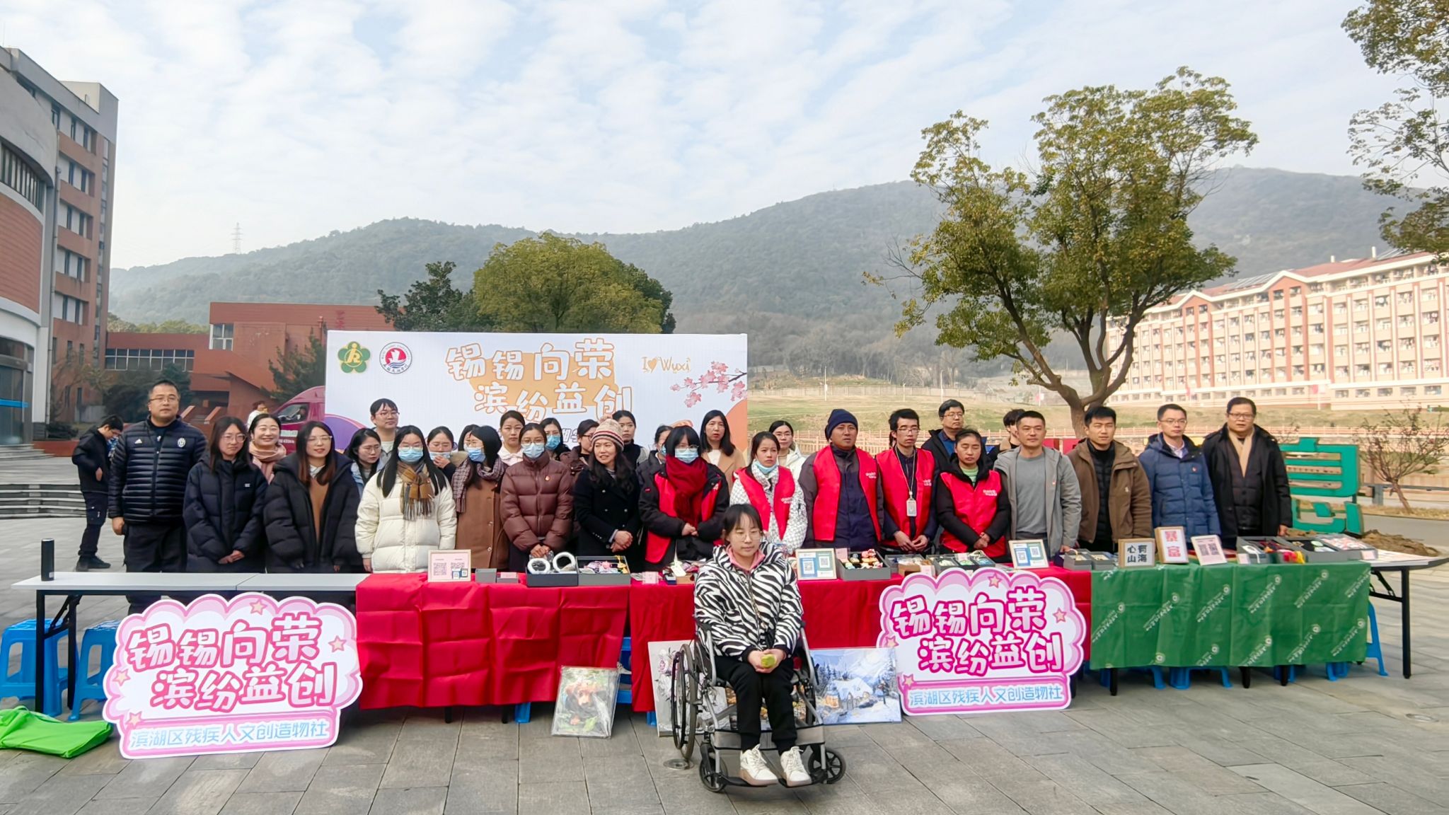 2023年12月27日由物联网工程学院党总支与无锡市滨湖区残疾人联合会联合主办、无锡市山百合关爱促进中心承办“锡锡向荣、缤纷益创”义卖活动在beat365官网6号楼后湖畔举办。滨湖区残疾人联合会副理事长缪卫平、物联网工程学院党总支副书记沈峰及全体党员同志出席了本次活动。