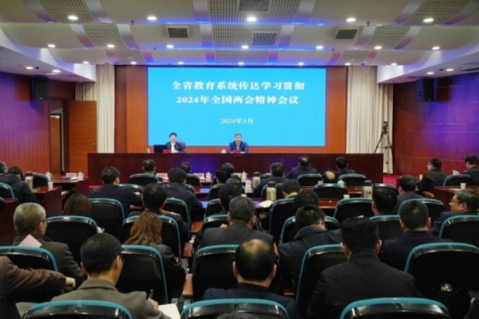 会议强调,学习宣传贯彻习近平总书记重要讲话和全国两会精神,是全省教育系统当前和今后一个时期的重要政治任务,要按照省委部署要求,结合江苏教育实际做到“三个聚焦”。一要聚焦学思践悟,迅速掀起学习热潮,做到“强信心、明方向”。全省教育系统要把学习贯彻习近平总书记重要讲话和全国两会精神,与学习贯彻党的二十大精神、习近平总书记关于教育的重要论述、对江苏工作重要讲话重要指示精神以及给江苏教育系统师生重要回信精神结合起来,一体推进学思践悟,切实把习近平总书记的殷切期望转化为教育发展的生动实践。二要聚焦统筹谋划,加快建设教育强省,做到“谋大局、促发展”。要坚持把习近平总书记提出的“走在前、做示范”的重大要求作为总体要求,加快构建高质量教育体系,高标准建设教育强省,加快建设统筹职业教育、高等教育、继续教育协同创新先锋区和教育、科技、人才一体统筹发展的实验区。三要聚焦落细落实,着力增强使命担当,做到“干劲足、作风实”。要紧扣发展新质生产力这一核心要义,围绕习近平总书记重要讲话精神,运用主题教育形成的调查研究等好做法,全力打造“公平共享、全面多样、适合契合、卓越创新”的教育先行示范高地,为全面推进中国式现代化江苏新实践提供更强支撑。