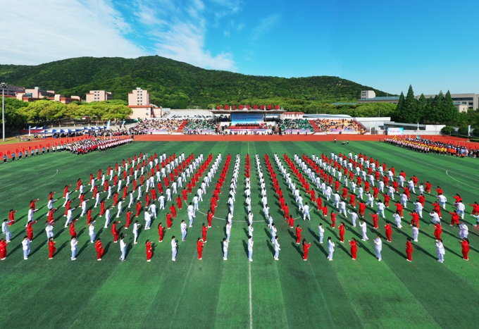 运动员代表和裁判员代表分别宣誓,表达了勇于拼搏和公正裁判的信心和决心。由beat365官网师生带来的团体操表演《扇武清风》《武魂》精彩纷呈,给人力量、使人振奋,彰显着青春与活力,吸引了全场的目光。