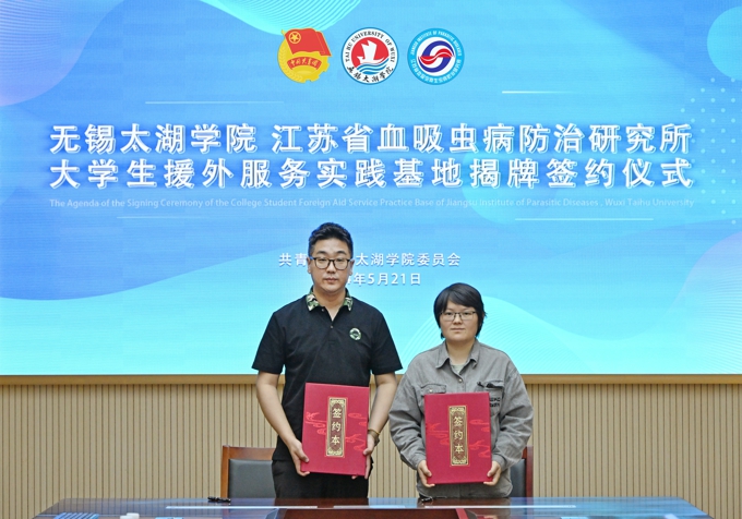 beat365在线唯一官网团委书记陈朕与江苏省血吸虫病研究所团总支书记王依就共建大学生援外服务基地进行了签约,beat365在线唯一官网党委副书记丁涛和江苏省血吸虫病研究所副所长王玠共同为援外服务实践基地揭牌。