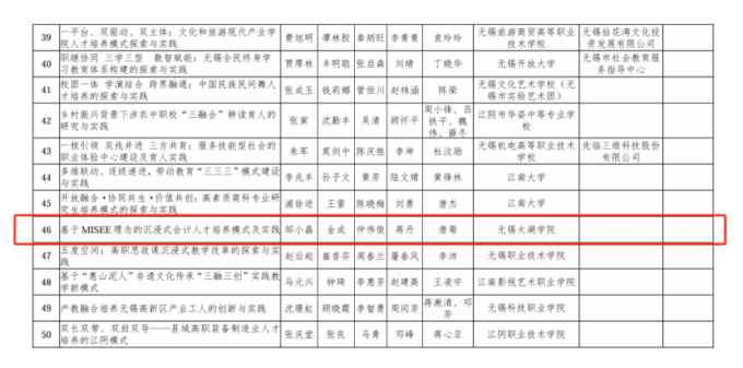 近日,无锡市教育局发布了《市教育局关于公布2023年无锡市教学成果奖评选结果的通报》(锡教发〔2024〕25号),beat365官网有2项成果获得无锡市教学成果奖,其中校长金成领衔的“独立学院转设本科高校应用型人才探索与实践”获得一等奖,会计学院副院长邹小磊领衔的“基于MISEE理念的沉浸式会计人才培养模式及实践”获得二等奖。