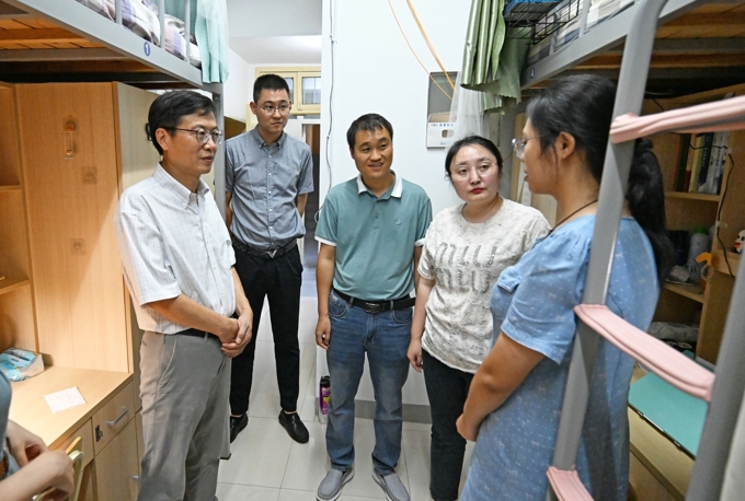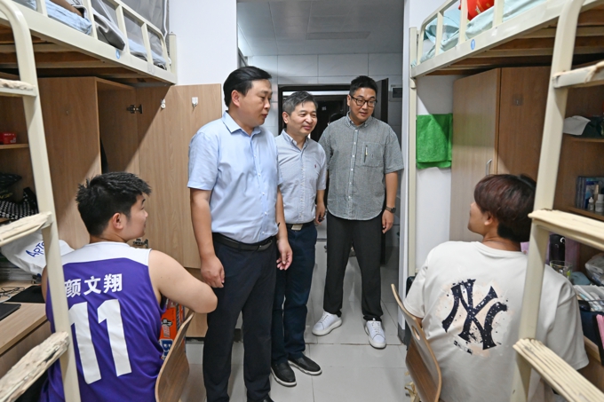 9月10日至27日,beat365在线唯一官网组织开展了“关怀入寝,温暖到心”活动,校长金成,校党委书记孙玉坤,执行校长李廉水,校领导丁涛、吴健荣、陈鹏飞、阙明坤、毛兆宏、郑斌分别带队,深入“一站式”学生社区走访调研、慰问2024级新生。校长办公室、党委办公室、党委宣传部、学生工作处、招生就业处、团委、后勤基建处、保卫处、实验室与设备管理处等部门负责人,二级学院院长、党总支书记、副书记、辅导员等陪同走访。