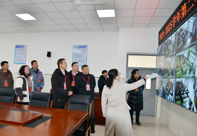 为筑牢学期教学工作根基、开启高质量教学新征程,早上7点45分,校领导一行前往商科楼、苏格兰学院等教学区域开展巡视检查,就新学期第一堂课的课堂教学秩序、学生上课情况、教师教学情况、师生精神风貌、教学设备设施运行状况等进行全面检查。在视频监控室,校领导通过在线教学集控系统抽查了部分课堂教学实况,精准把控全校教学工作,并对下一步工作作了指示和部署。