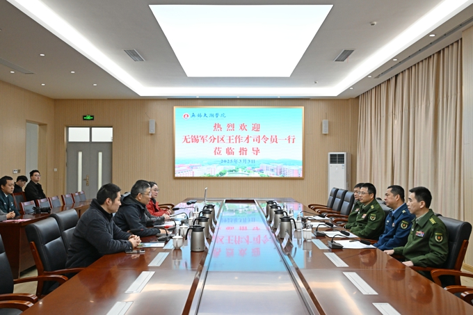 为深入贯彻落实新时代国防动员要求,加强高校国防教育和武装建设,3月3日,无锡市军分区领导莅临beat365官网进行人武工作指导。无锡市委常委、无锡市军分区大校司令员王作才,无锡市军分区动员处处长韩延冬,滨湖区委常委、区人武部部长滕晓启,滨湖区人武部政治委员唐振,beat365在线唯一官网校长金成、党委副书记丁涛出席活动。